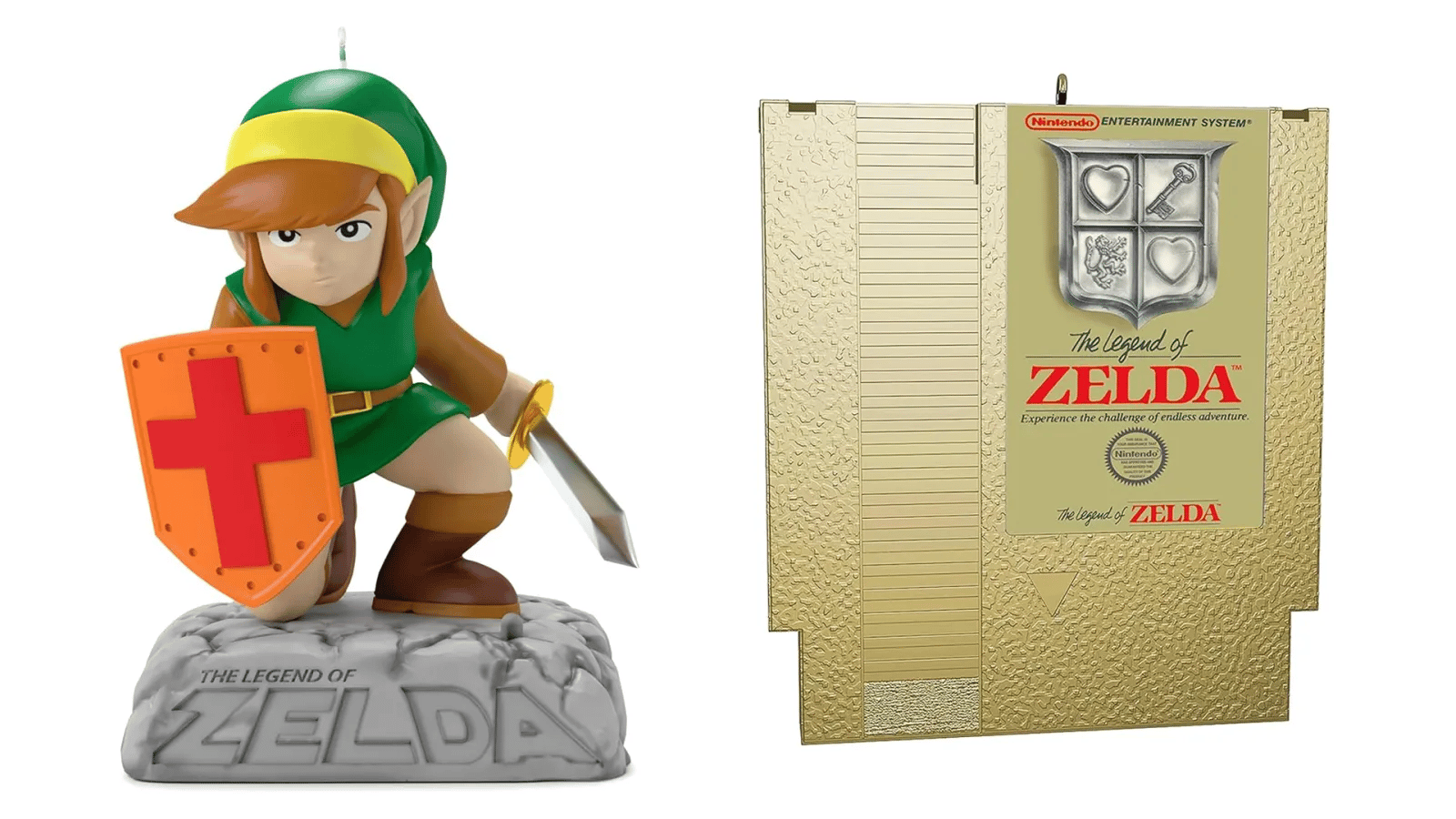If you missed them the first time, the 8‑bit Link (with the classic theme) and Mario punching a Question Block are back from the Keepsake Archives program. And if you’re building a console branch, the NES Console still lights up and plays the OG Super Mario Bros. music—instant crowd‑pleaser when the tree’s on.